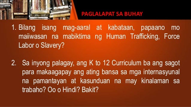 Once the person is working an employer may force defraud or coerce the victim to do work not agreed to at the time of recruitment. Paano mo magagamit ang iyong natutunan sa araling ito sa iyong pang agaw agaw na pamumuhay. Isulat sa hiwalay na papel1.